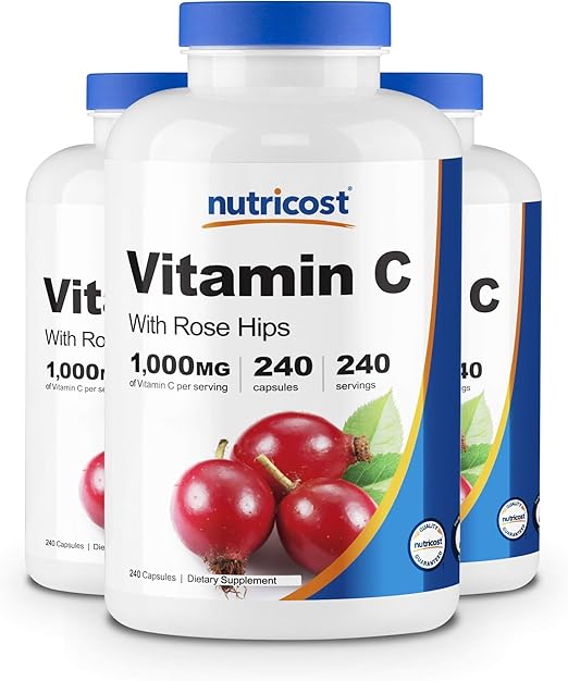 Nutricost Vitamina C con rosáceos 1025mg, 240 cápsulas – Premium sin OMG, sin gluten Vitamina C suplemento, 1